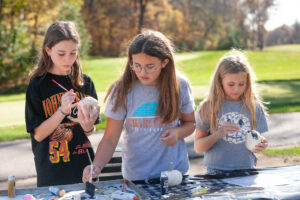 Girls paint pumpkins at the Blackberry Ridge Fall Fest event Oct. 26. They are (left to right) Greta Stang, 11; Elise Bosek, 12; and Brooklyn Bosek, 8. All are of Sartell.