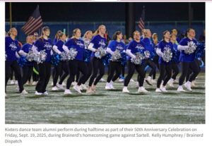 Kixters dance team alumni perform during halftime as part of their 50th anniversary celebration on Sept. 19 during Brainerd’s homecoming game against Sartell.