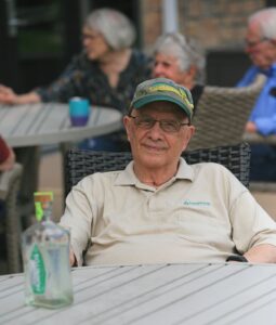 Phil Ruggiero enjoys tequila outside with neighbors Aug. 5 during the Chateau Waters National Night Out event. The patio was packed with more than 30 residents who gathered for lively conversation, cookies and lemonade.